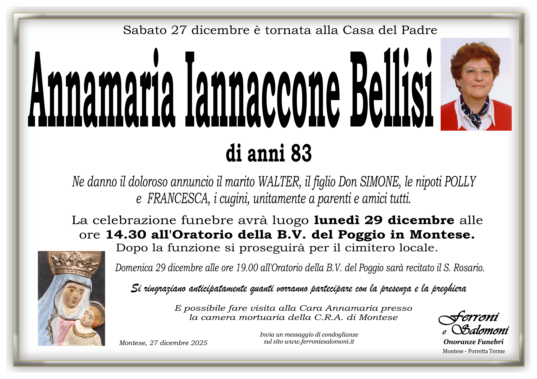 Carissimi Walter e Don Simone, abbiamo saputo della triste notizia. Purtroppo non potremo essere presenti al funerale per motivi di salute, ma vi siamo vicini. Le nostre più sentite condoglianze.